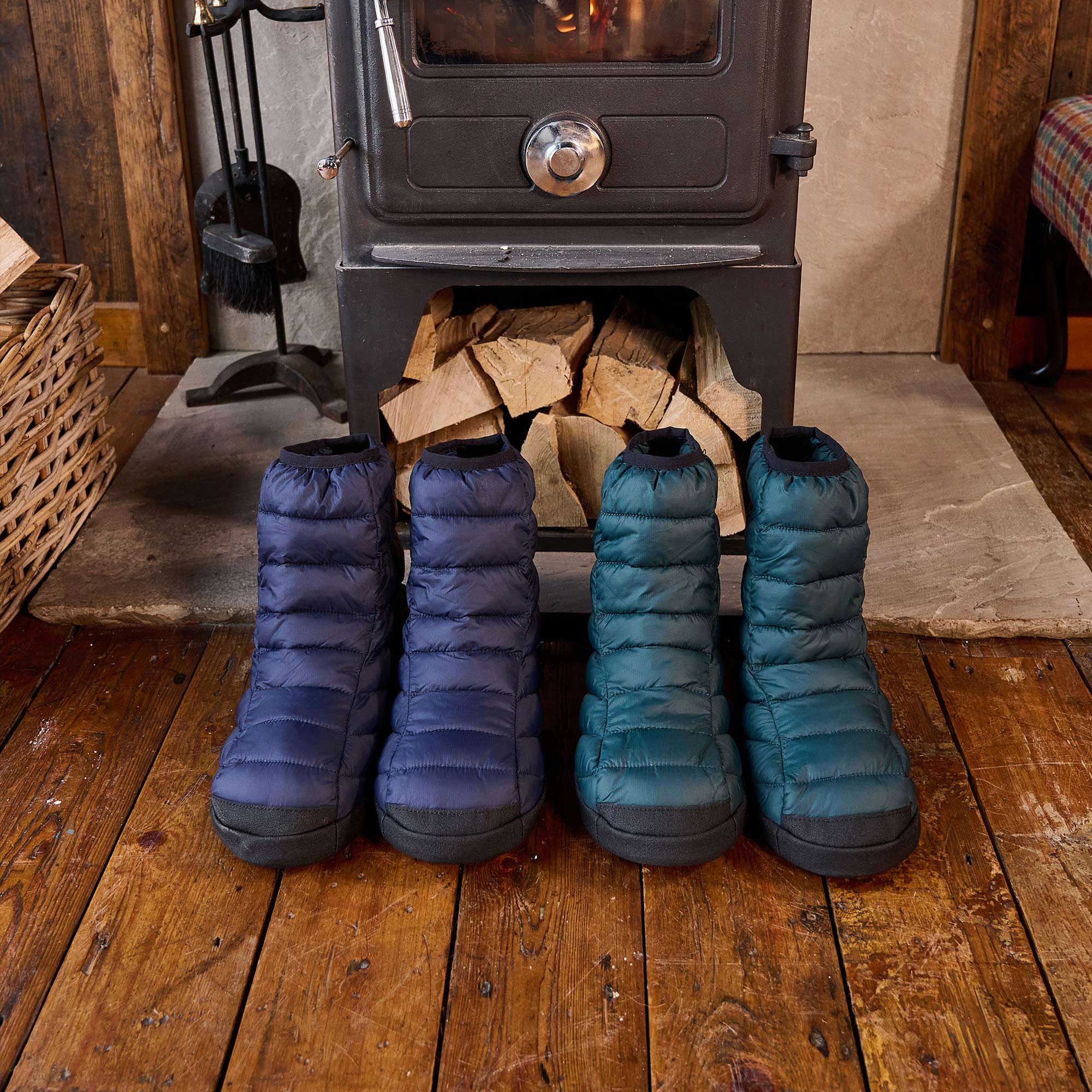 Warm and durable insulated hut boot style slippers ideal for camping